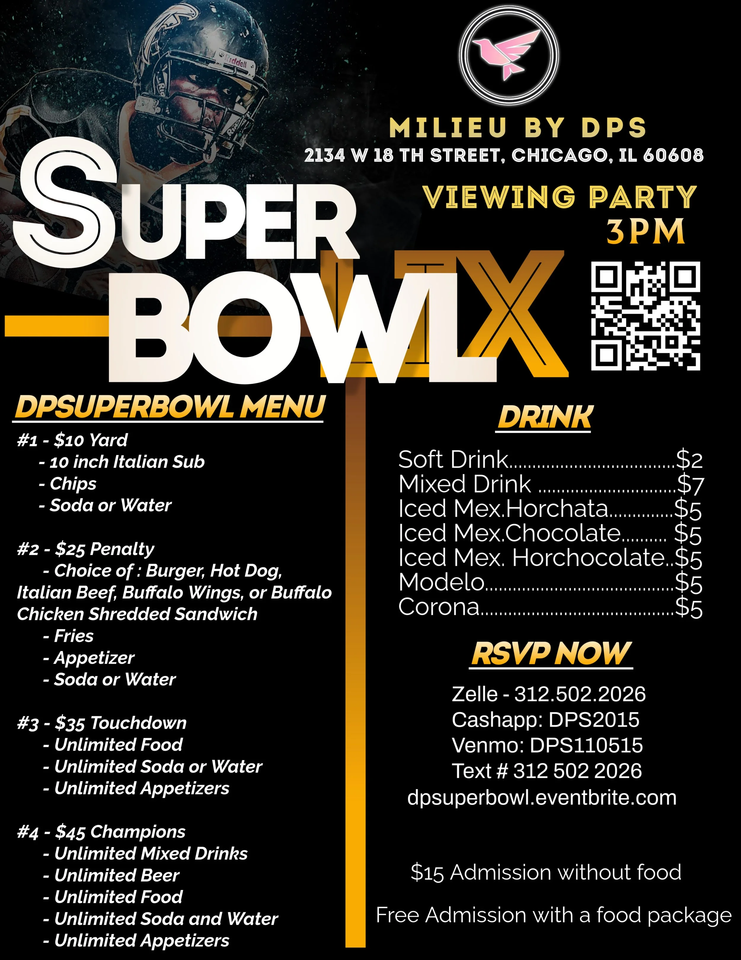 We’re hosting a Super Bowl viewing party at Milieu by DPS!